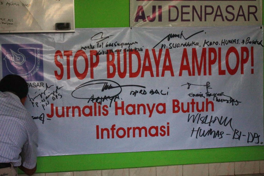 Benar kata AJI Denpasar dalam sebuah spanduknya yang jadi ilustrasi tulisan ini: wartawan hanya butuh informasi, bukan amplop, karena amplopnya wartawan adalah gaji yang mereka terima dari perusahaan media tempat mereka bekerja. (editor/bandungaktual.com).*