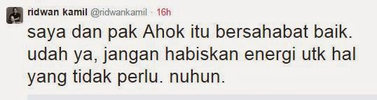 Di akhir cuitan, Kang Emil menegaskan dirinya dan Ahok bersahabat baik dan mengajak para "haters" (baca: pendengki) agar tidak menghabiskan energi untuk hal yang tidak perlu.*
