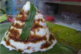 Awug termasuk makanan khas Bandung dengan rasa kue putu dan tampilan nasi tumpeng.