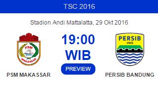 BandungAktual.com -- Persib Bandung menjalani laga tandang di markas PSM Makassar, Stadion Andi Mattalatta, Sulawesi Selatan, dalam lanjutan pertandingan TSC Sabtu, 29 Oktober 2016 (Siaran Langsung SCTV mulai Pkl. 18.30 WIB).