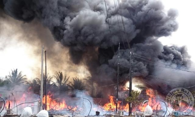 Kelima bangunan itu di antaranya bangunan pembuatan rotan, bengkel, dan beberapa warung kecil. Kebakaran tersebut, mulai terjadi sekitar pukul 12.45 WIB.