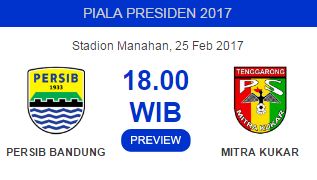 BandungAktual.com -- Persib Bandung menghadapi Mitra Kukar di babak delapan besar Piala Presiden 2017 di Stadion Manahan, Solo, Jawa Tengah, Sabtu (25/2/2017), Pkl. 18.00 WIB.