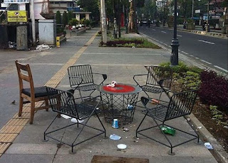 Ia kemudian mengunggahnya kembali dalam akunnya Instagramnya dengan caption: "Buat anda2 #KelasMenengahNgehe yang menikmati trotoar dago yang baru tapi nyampah seperti ini. Ini pesan dari kami: Salam jari tengah," tulisnya.