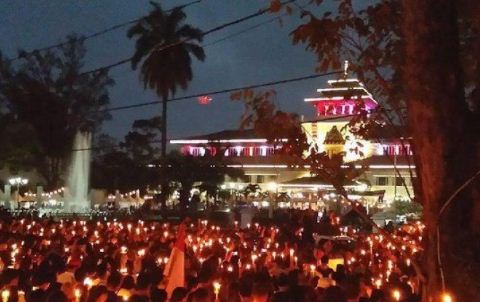Massa yang mayoritas dari luar kota Bandung --karena warga Bandung fokus ke pertandingan Persib di Padang-- mengadakan aksi menyalakan lilin di depan Gedung Sate, Kota Bandung. Membela Ahok, mereka berdalih menyuarakan keadilan dan perdamaian.