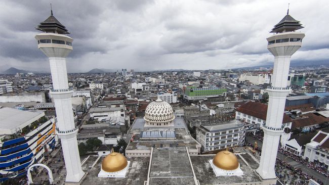 Masjid Raya Bandung jadi salah satu tempat yang ramai dikunjungi saat lebaran ini.
