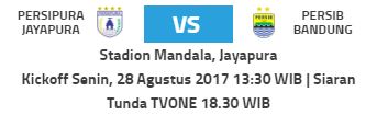 Duel Persipura Jayapura vs Persib Bandung Pkl 13.30 WIB tidak disiarkan langsung tvOne, melainkan siaran tunda Pkl 18.30 WIB, sebagaimana dilansir situs resmi Liga 1 Indonesia.