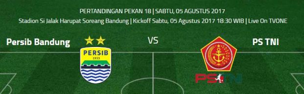 Duel Persib vs PS TNI akan disiarkan langsung tvOne ( Kickoff Pkl 18.30 WIB).