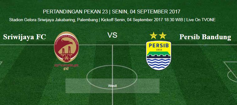 Duel Sriwijaya vs Persib menurut rencana disiarkan langsung tvOne mulai Pkl 18.30 WIB. Laga ini merupakan pertandingan tunda pekan ke-20 yang sedianya digelar 16 Agustus.