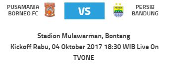 Borneo FC akan menjamu Persib Bandung, Rabu 4 Oktober 2017, Pkl 18.30 WIB (Live tvOne).
