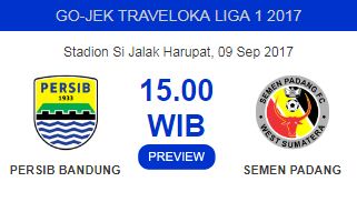 Prediksi Persib Bandung vs Semen Padang FC. Stadion Si Jalak Harupat. Sabtu 9 September 2017 Pkl 15,00 WIB.