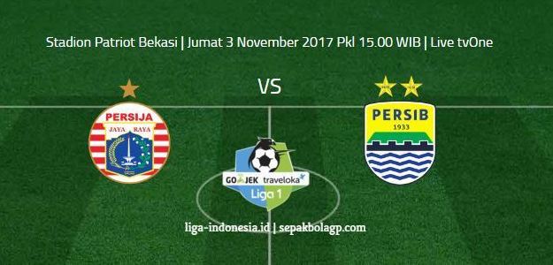 Persija Jakarta akan menjamu Persib Bandung pada lanjutan Liga 1 di Stadion Patriot Candrabhaga, Bekasi, Jawa Barat , Jumat (3/11/17), Pkl 15.00 WIB.