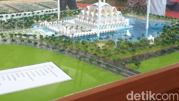 Lahan lainnya akan digunakan sebagai pelataran parkir, ruang terbuka, empat menara, hingga danau retensi yang mengelilingi masjid.