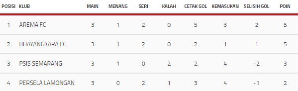 Klasemen Akhir Grup A Piala Presiden 2018
