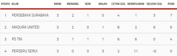 Klasemen Akhir Grup B Piala Presiden 2018