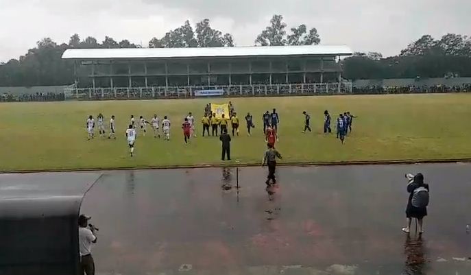 Laga sempat tertunda karena hujan deras mengguyur lapangan. Setelah reda, laga dimulai.