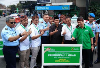 Kini pengguna layanan transportasi online di Bandara Husein tak perlu lagi kucing-kucingan. Taksi Primkopau telah terintegrasi dengan fitur Grab Now.