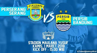 Rencananya, pertandingan Perserang vs Persib digelar di Stadion Maulana Yusuf, Serang, Banten, Kamis (1/3/2018), kick-off Pkl 15.00 WIB.