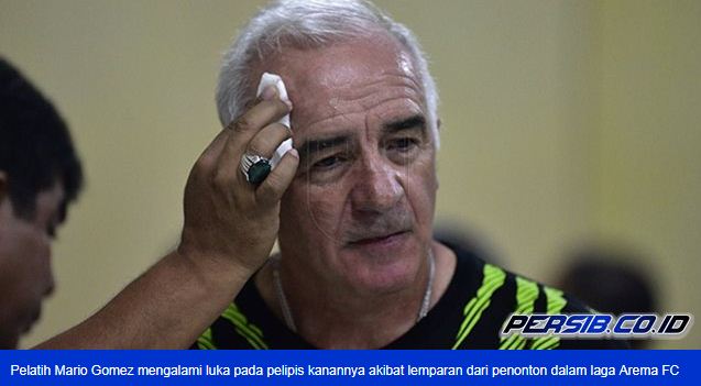 Pelatih Persib Bandung Mario Gomez tidak mempermasalahkan soal luka pelipis kanannya akibat lemparan Aremania saat rusuh di laga Arema FC vs Persib pada lanjutan Liga 1 di Stadion Kanjuruhan, Malang, Minggu (15/4/2018).