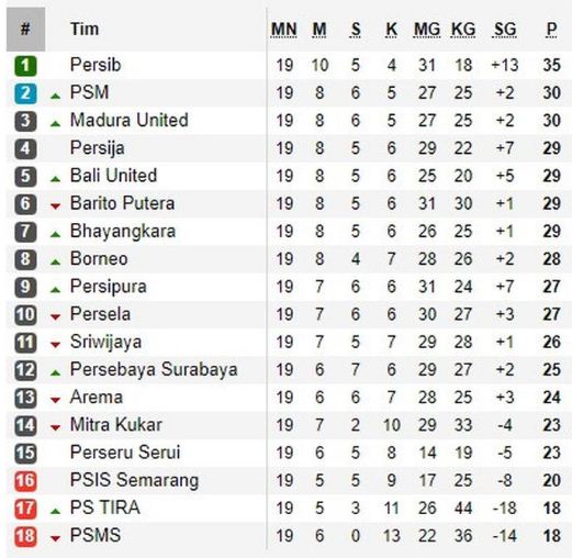 Saat ini Persib memuncaki klasemen dengan 35 poin atau berjarak 5 poin dari pesaing terdekatnya, PSM Makassar dan Madura United, di posisi dua dan tiga klasemen dengan 30 poin.