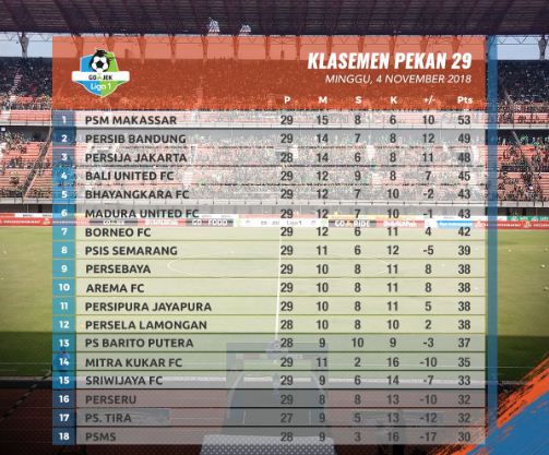 Klasemen Liga 1 2018 Pekan 29