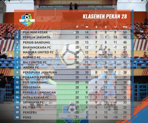 Saat ini Persib duduk di urutan ketiga dengan koleksi 46 poin. Mereka terpaut dua poin dari Persija dan empat poin dari PSM yang kini berstatus sebagai penguasa. Sialnya, mereka juga terancam kembali tergusur jika kalah dari Bhayangkara FC.