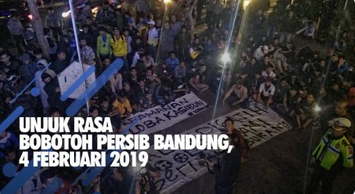 Bobotoh Persib Bandung melakukan unjuk rasa, Senin, 4 Februari 2019. Unjuk rasa ini berkaitan dengan batalnya pertandingan Piala Indonesia 2019 antara Persib Bandung dan Persiwa Wamena.