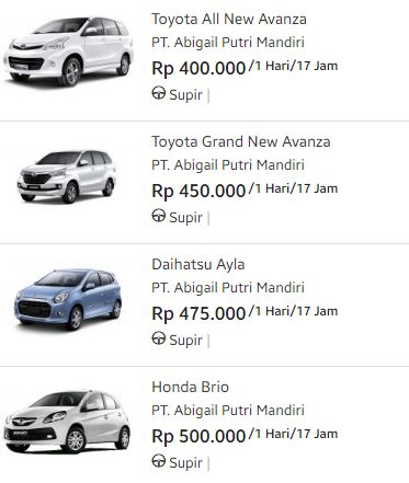 Daftar Harga Rental Mobil Bandung Abigail
