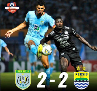 Persib Bandung hanya mampu bermain imbang 2-2 melawan tuan rumah Persela Lamongan dalam pertandingan lanjutan Liga 1 2019 di Stadion Surajaya, Lamongan, Kamis 8 Agustus 2019.