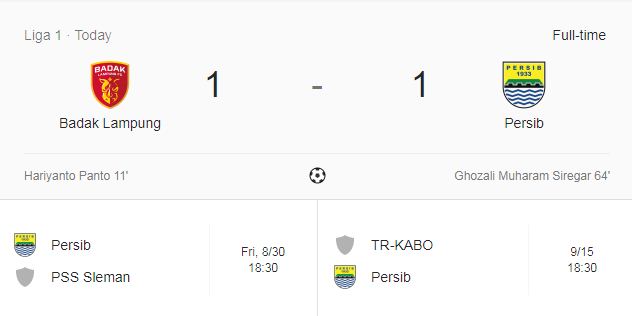 Dengan hasil ini Badak Lampung naik ke posisi ke-16 klasemen sementara dengan perolehan 13 poin. Persib tak beranjak dari urutan ke-12 dengan koleksi 16 poin.