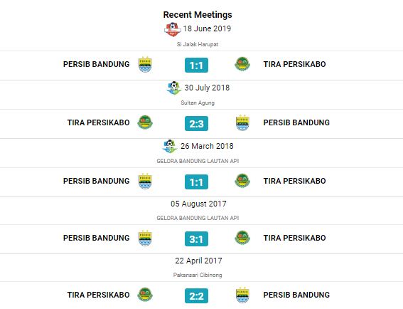 Head to Head & Statistik Tira Persikabo vs Persib Bandung