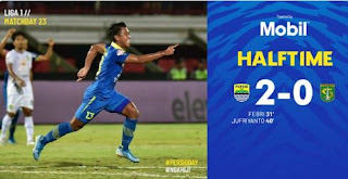 Persib unggul 1-0 melalui gol Febri Hariyadi di menit 31. Tendangan mendatar kaki kanan Febri Hariyadi membuka keunggulan Maung Bandung.