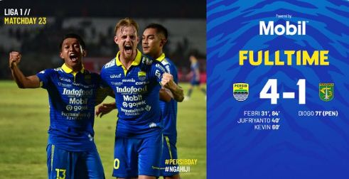 Persib Bandung menang telak 4-1 atas Persebaya Surabaya dalam laga pekan 23 Liga 1 2019 di Stadion Kapten I Wayan Dipta, Gianyar, Bali, Jumat (18/10/2019) malam.