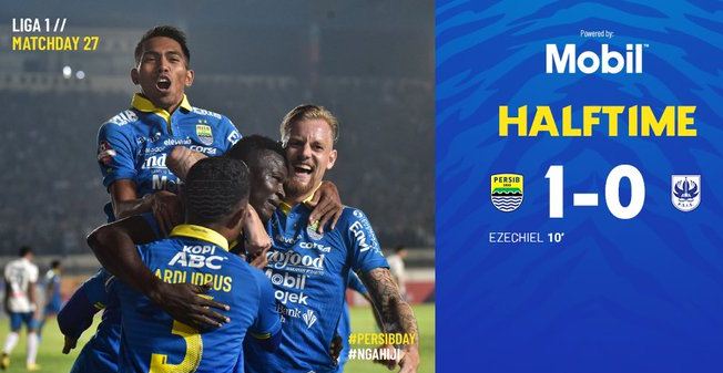 Persib yang langsung menjalanan permainan menyerang unggul 1-0 setelah Ezechiel Ndouasel mencetak gol.