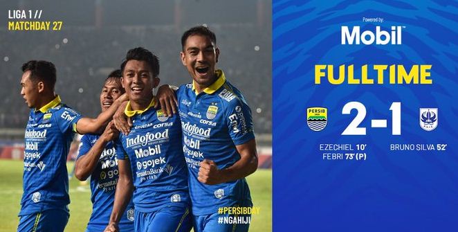Skor akhir Persib Bandung vs PSIS Semarang 2-1.